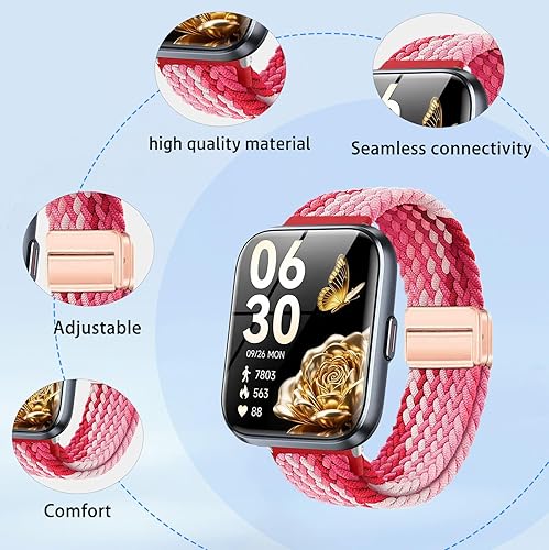Band for Hingso ID208 Plus, Breathable Braided Wristbands,Nylon Braided Band,Adjustable Wristband,Women Men,Replacement Strap for Hingso ID208 Plus SmartWatch(Strawberry-Red)