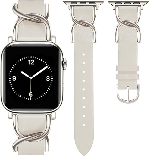JR.DM Designer Leather Bands for Women,Dressy Fancy Cute Strap with Double U-Shaped Buckle Watch Bands for iwatch Compatible with Apple Watch Series 11/10/9/8/7/6/5/4/3/2/1 Ultra 1/2/3 SE 1/2/3