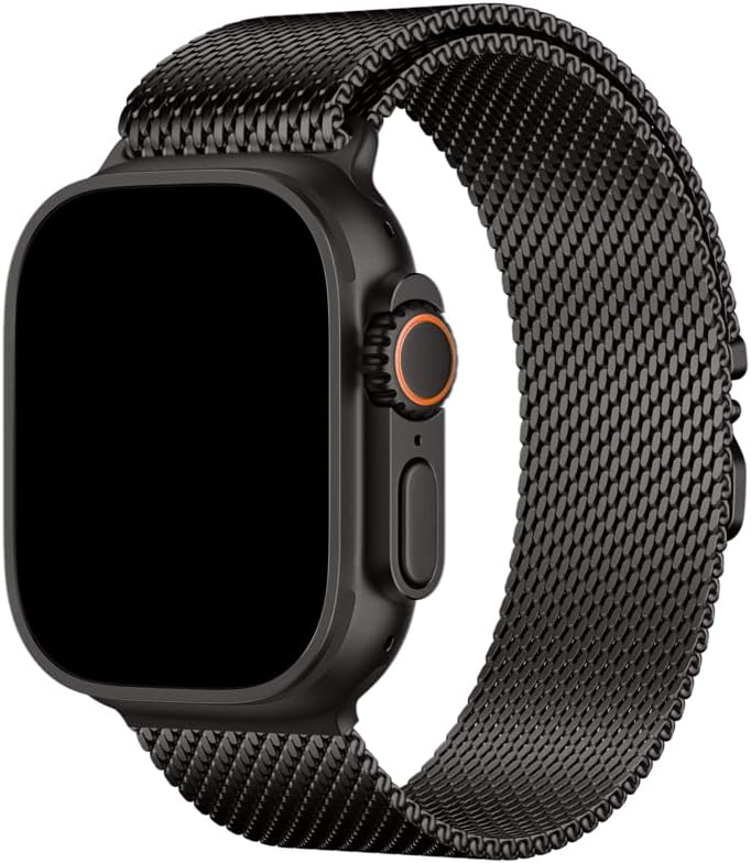 WSYB Milanese Mesh Loop Compatible with Apple Watch Band Ultra 2/Ultra 49mm 46mm 45mm 44mm 42mm 41mm 40mm 38mm Men Women, Designer Parachute-Style Metal Buckle Adjustable Strap for iWatch SE Series 11/10/9/8/7/6/5/4