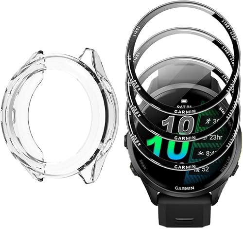 Watch Screen Protector (3+1Pack) Compatible for Garmin Forerunner 570 42mm,Full Coverage 3D Curved Edge Frame PET Film Anti-Scratch High Definition and TPU Protective Case (transparent)