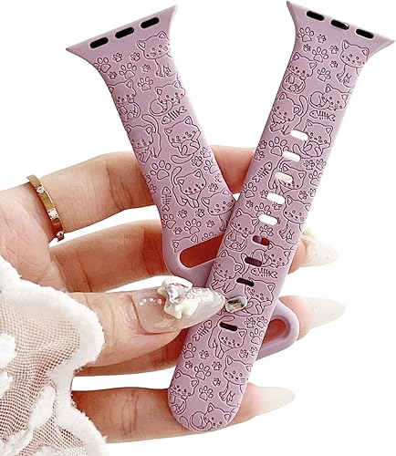 LeeCHee Engraved Cat Bands Compatible with Apple Watch Band 40mm 41mm 38mm 42mm 44mm 45mm 46mm 49mm, Cute cat paw print Pattern Soft Silicone Strap Compatible with iWatch Series 1-10,SE,Ultra