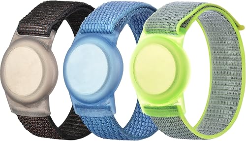 Nylon Kids Wristband Compatible with Apple AirTag,TPU Protective Case Air Tag Holder for Kids with Adjustable Nylon Watch Band Bracelet for Toddler Child Elder Anti Lost