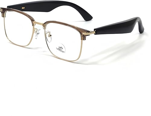 HJX Smart Glasses for Unisex,Bluetooth Glasses for Women, Suitable for Indoor Use, Blue Light Protection, Voice Control, Magnetic Interchangeable Lenses(Brown Gold Frame)