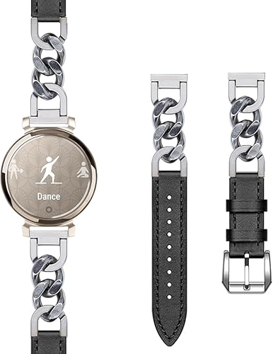 Compatible with Garmin Lily 2 / Lily 2 Active Leather Watch Band, Dressy Stainless Steel Band for Women