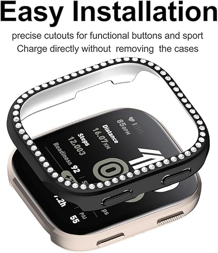 [2 Piece Glitter Diamond Case for Amazfit bip 6, Hard PC Bumper Case with Bling Protective Case Cover Smartwatch Accessories for Women Girls,Black+Black