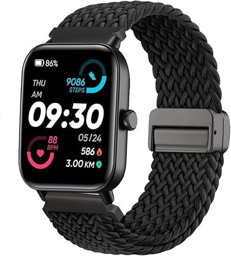 Magnetic Braided Watch Bands Compatible with Woneligo/Fitpolo Smart Watch IDW13,22mm Loop Stretchy Nylon Elastic Fabric Strap for FITVII H56/ENOMIR ID208BT/TOOBUR IDW16/MILOUZ IDW19 Watch