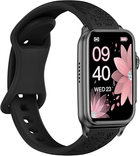 Floral Engraved Watch Bands Compatible with FITVII Nexa 1.57 inch Smart Watch, Soft Silicone Flower Pattern Watch Straps Sport Replacement Wristband for FITVII Nexa Fitness Tracker