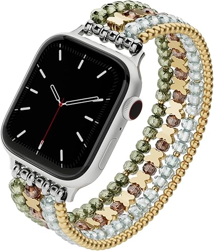 Beaded Bracelet Compatible with Apple Watch Band 42mm/44mm/45mm/49mm Series 10 9 8 7 SE Women, Fashion Elegant Cute Butterfly Handmade Elastic Beads Stretch Jewelry Strap Replacement (RoseGold/S)