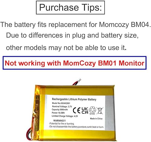 AOLIKES 5000mAh Battery Replacement for Momcozy BM04 Smart WiFi Baby Monitor, 5" 1080P Screen HD Video Baby Monitor Batteries - [ Not Working with MomCozy BM01 Monitor]