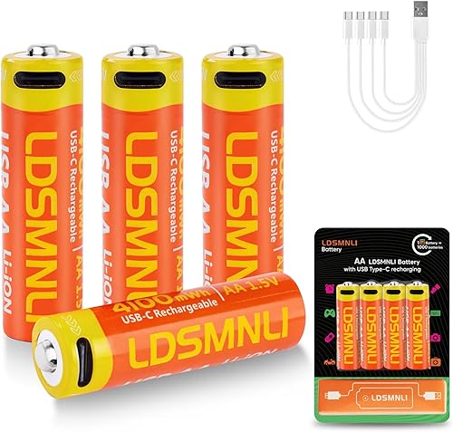 4100mWh Rechargeable AA Lithium Batteries - 1.5V USB Double A Battery with 4-in-1 Cable, High Capacity AA Size Batteries 1000 Cycles for Flash, Xbox, Toy (4 Pack)