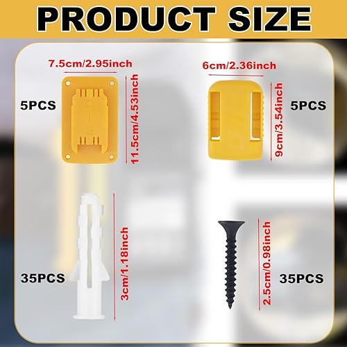 10pcs Battery Holder Tool Holder for Dewalt, Yellow Wall Mount Battery & Drill Tool Storage for Necessary Gadget