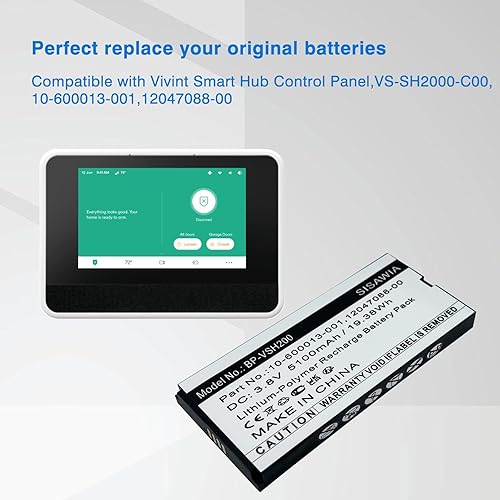 3.8V Replacement Battery for Vivint Smart Hub Control Panel,10-600013-001,VS-SH2000-C00,12047088-00,5100mAh