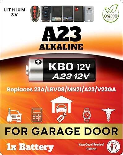 Garage Door Opener Battery - Single A23 Alkaline - 12V High-Stability Garage Door Opener Power Replacement for Major Remotes, Keypads, Sensors