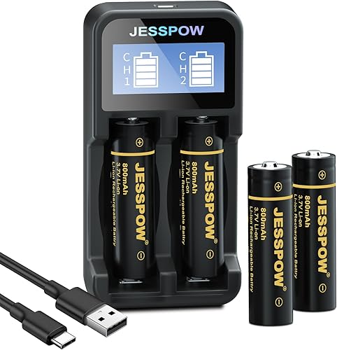 14500 Rechargeable Battery 800mAh Button Top 3.7 Volt Batteries for Headlamp Flashlight (4 Pack,14500 Battery+Charger)