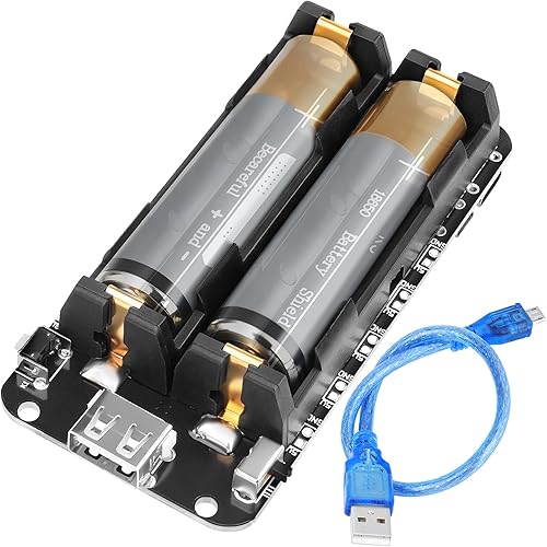 FancyWhoop 1865O Battery Holder for Raspberry Pi and Arduino ESP32, Double Li-ion V8 Power Bank Holder Support Micro USB 5V/3A 3V/1A V8 Battery Shield, with 30CM USB Port Line (2 Holders)