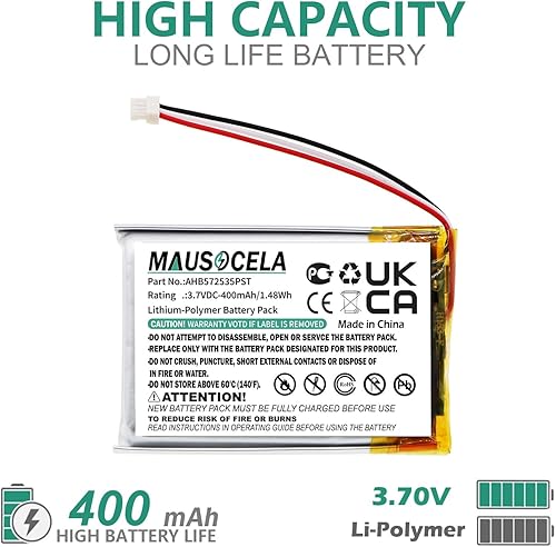 AHB572535PST Replacement Battery, Compatible Jab'ra Evolve 75 Wireless Headset Battery-400mAh/1.48Wh-3.7V Li-Polymer