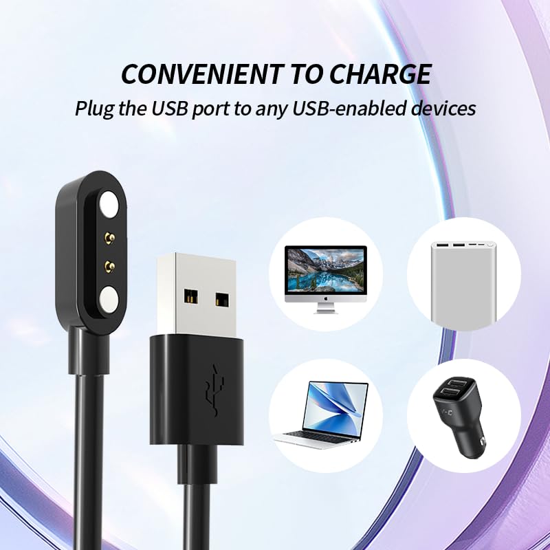 [2 Pack] for Jugeman P131 2.06 Inch SmartWatch Charger, Magnetic Replacement USB Charging Cable Compatible with Jugeman P131 Smart Watch Accessories.(Black)