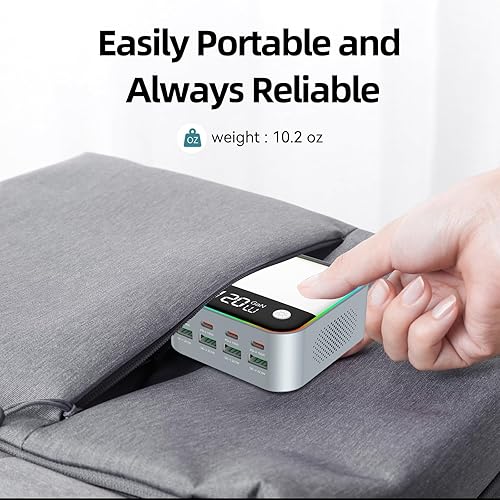 【8-in-1 Charging Hub for All Your Devices】 Features 4 USB-C PD ports (up to 100W) and 4 USB-A QC 3.0 ports (up to 22.5W), allowing you to charge up to 8 devices at once. Smart power allocation delivers optimal charging speeds. Sleek and compact—ideal for desks, nightstands, travel, and more