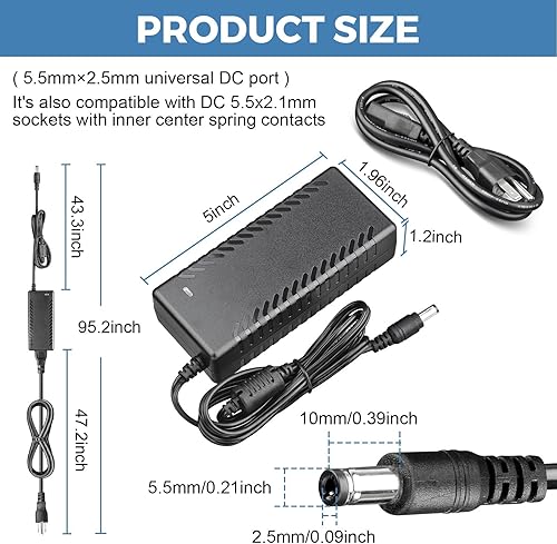 Size and Dimension: 12 Volt 4 Amp adapter is suitable for 5.5x2.5mm and 5.5x2.1mm plugs for compatibility with a wide range of devices. Please note the DC plug polarity is inner Positive (+) and outer Negative (-)