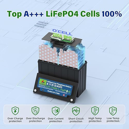 12V 6AH CYCLE BATTERY: O'CELL LiFePO4 Lithium Battery provides 4000+ cycles compared to 200 - 500 cycles in typical Lead Acid chemistry. We designed deep-cycle batteries that can provide steady power for long periods which is ideal for situations that need consistent energy output, such as fish finder, kids' ride-on toy car, or renewable energy systems.