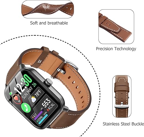22mm Leather Bands Compatible with IDW13/IDW16/IDW19 Smartwatch Bands for Fitpolo IDW13/Woneligo W13 ENOMIR/TOOBUR/MILOUZ/Gydom/Faweio/Veryfit IDW19 Watch Band for Women Men(LightBrown)