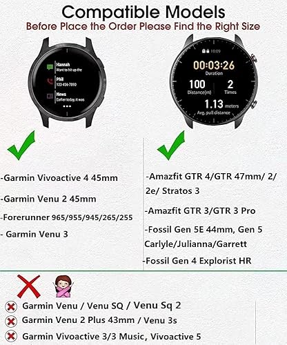 ✅COMPATIBLE MODELS -- These 22mm bands perfectly compatible with Garmin Vivoactive 4 45mm, Venu 2 45mm, Venu 3, Forerunner 265/965/955/945/255,Samsung Galaxy Watch 3 45mm/Galaxy Watch 46mm 2018 edition, Gear S3 Frontier/Classic, Fossil Gen 5E 44mm, Gen 5 Carlyle/Julianna/Garrett, Gen 4 Explorist HR Smartwatch. These GARMIN Watch straps snugly attach to your watch extremely sucure. With the high quality 316L metal, easy to put it on or take it off.