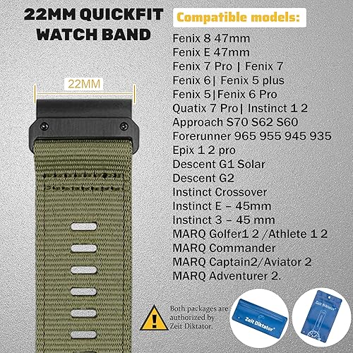 Comment on "22mm Quickfit Watch Bands Compatible with Garmin Fenix 8 47mm Fenix 7X Pro/6 Pro/5 plus/Instinct/Forerunner 965 955 945 935/Epix/Descent G1/Approach S70 S60 S62 Nylon Watchband For Men(Black+ForestGreen,22mm)"
