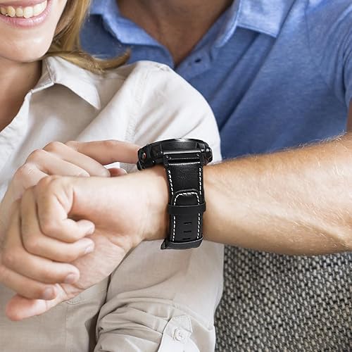 26mm Genuine Leather Watch Band Compatible With Garmin Tactix 8 7/Fenix 8 Pro 51mm AMOLED/7X Pro/7X/6X Pro/6X/5X Plus/5X/3 HR/3,Quick fit Strap for Quatix 8/epix Pro 51MM/Enduro 3 2(black(New))