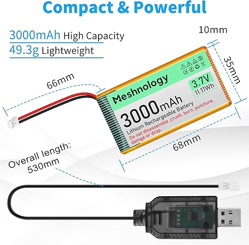 Compact Size with Enhanced Power: Measuring 103450, this compact lithium polymer battery is designed for tight spaces without sacrificing power. Its lightweight design makes it ideal for applications needing a powerful yet small battery solution.
