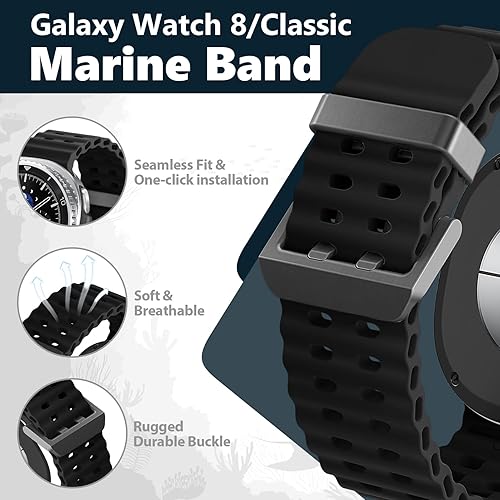 【Breathable wave Design】Galaxy watch 8 classic bands features a new ocean wave pattern design, which is comfortable, breathable, keeping your wrist cool and dry during Water Sports,Swimming,diving,Surfing,Sweat-Heavy Workouts,Hiking,daily running, mountaineering, and other occasions