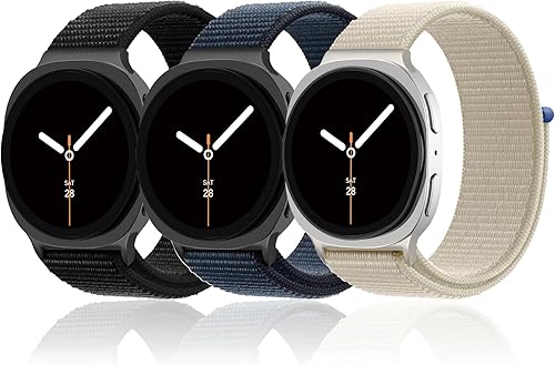 Comment on "3 Pack Nylon Bands for Galaxy Watch 8 Band 40mm 44mm/Galaxy Watch 8 Classic Band 46mm Men/Women,Breathable Soft Fabric Sport Loop Adjustable Wristband Strap for Samsung Galaxy Watch 8/8 Classic(06-Midnight/Army Green/Sea Blue,Galaxy Watch 8/8 Classic)"