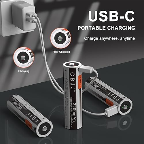 [Durable Design for Reliable Performance] This USB-C rechargeable battery has 6 layers of protection, overcharge, short-circuit, over-current, over-discharge, over-voltage, and temperature protection), as well as seals and thermistors. Suitable for flashlights, wireless mice, cameras and other high power consumption devices. Whether it's an outdoor adventure or a daily task, it will power your tools when you need it most.