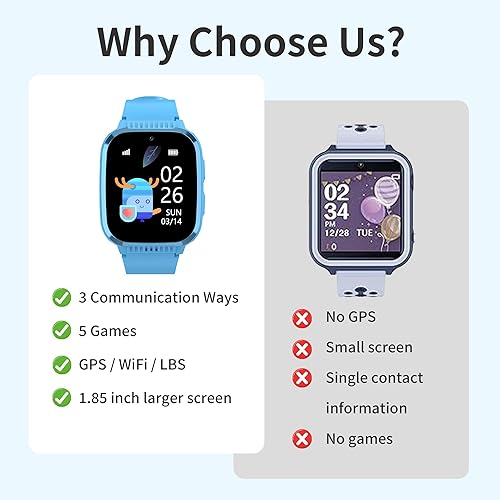⌚[Kids Watch with GPS Tracker]: Kids smart watch build-in GPS/LBS locator can provide real-time location and history tracking for children. You can set up a safe fence, and when your child leaves this area, you will receive a reminder through the gps tracker for kids.