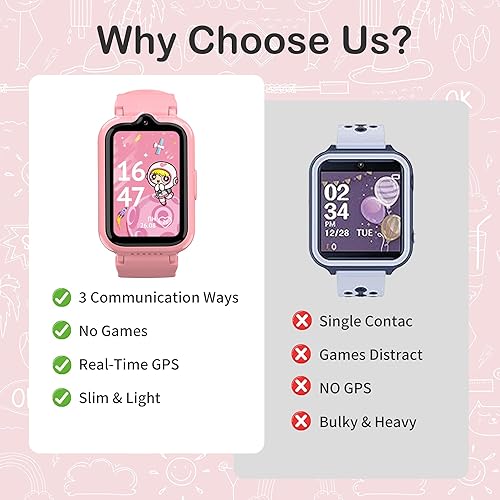 Comment on "4G Smart Watch for Kids | Kids Watch with GPS Tracker Waterproof HD Touch Screen Video & Voice Chat Calling Alarm SOS Camera Calculator Parental Control, Kid Cell Phone Watches Gift Toys for Ages 8-13(Pink)"