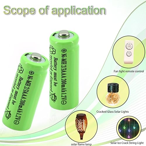8 Packs Ni-MH 2/3AAA 1.2v 200 mah Rechargeable Batteries,2/3 AAA Battery for Solar Lights,Outdoor Solar Garden Art Light Battery(They are not AAA Size Batteries)