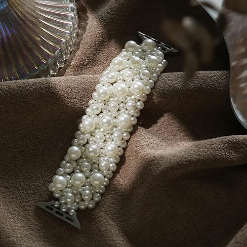 A watch strap made of artificial pearls strung together to make your wrist more attractive, compatible with IWatch series 11 10 9 8 7 6 5 4 3 2 1 SE Ultra 2/1, 38/40/41/42/44/45/46/49mm straps(44/45/46/49/42mm(Series3/2/1))