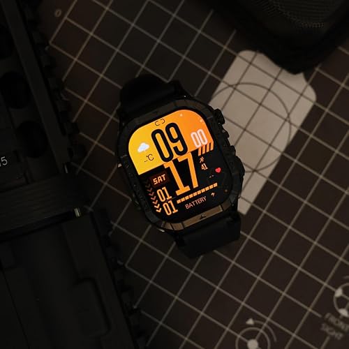 【LARGE CAPACITY BATTERY】- This tactical smartwatch for men boasts a 730mAh battery—twice the capacity of conventional smartwatches. With an innovative super power-saving AI algorithm, it minimizes power consumption while allowing continuous use in sports mode. The watch charges in just 3 hours and provides 7 to 10 days of battery life on a full charge, depending on usage.