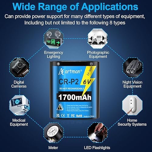 Comment on "Artman CR-P2 Battery,(5 Pack) 1700mAh Large Capacity CR-P2 6V Lithium Photo Battery Replaces 223A, DL223A, EL223AP and 2CR-P2 Batteries for Flashlights, Security Systems, Smart Devices"