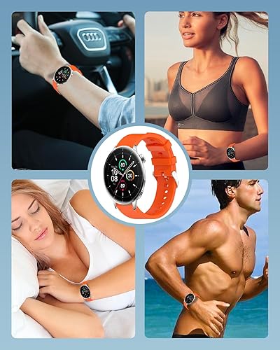 【Soft Silicone Material】Smartwatch bands for women men are made of premium soft silicone, prevents skin from irritation, lightweight, persistent, skin-friendly, touch comfortable, water-resistant and sweat-proof.