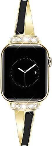 【Unique Feminine Design】--for Gold Slim Designer Bling Band: This strap adopts a two-color cross design, specially made for women, and its curvature fits the female wrist perfectly. One side is embellished with drip glue material. The shiny effect of drip glue makes the strap exude a charming luster in any light. Each piece is a unique work of art. Whether it is worn daily or on special occasions, it can show the elegant charm of women
