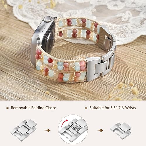 【Compatible Models】Boho apple watch band perfectly fit apple Watch 38mm 40mm 41mm 42mm 44mm 45mm 46mm 49mm, Compatible with beaded apple watch bands for women Series 11, Series 10, Series 9, Series 8, Series 7, Series 6, Series 5, Series 4, Series 3, Series 2, Series 1, SE, Ultra, Ultra 2 all apple series