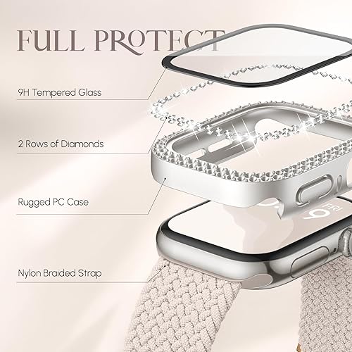 New Look: Color-match solace apple watch bands for women and bling case features stylish while providing robust external protection from dust, fingerprints and scratches, ensuring long-lasting clarity and defense. The screen protector adopts built-in 9H tempered glass without affecting the apple watch's on-screen touch sensitivity