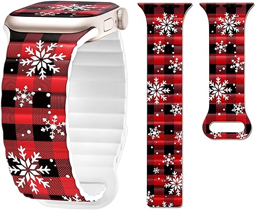 Calina Christmas Magnetic Watch Band Compatible with Apple Watch Bands for Women 42mm (Series11/10) 41mm 40mm 38mm, Holiday Silicone iWatch Band for Apple Watch SE Series 11 10 9 8 7 6 5 4 3 2 1(Christmas 01,42mm(Series11/10)/41mm/40mm/38mm)