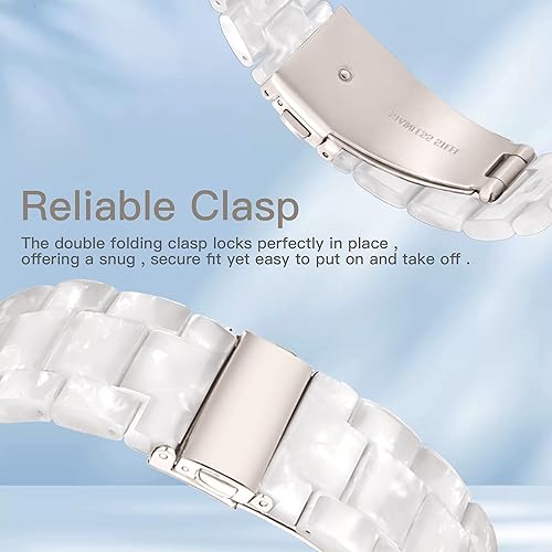 [Premium Resin Material] Made of top-quality resin, the band is lightweight but strong. The apple watch bands weigh less than 0.7oz. Your wrist will feel comfortable even if you wear it all day. The band surface is super smooth, so it feels comfy on your wrist. Both the band and stainless steel fold-over clasp is very durable and reliably secure.