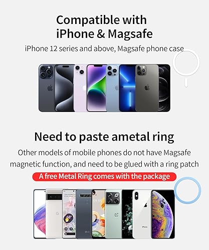 Compatible Phone Models: iPhone 17/16/15/14/13/12 Series (with Magsafe), other smartphones (used with magnetic ring)
