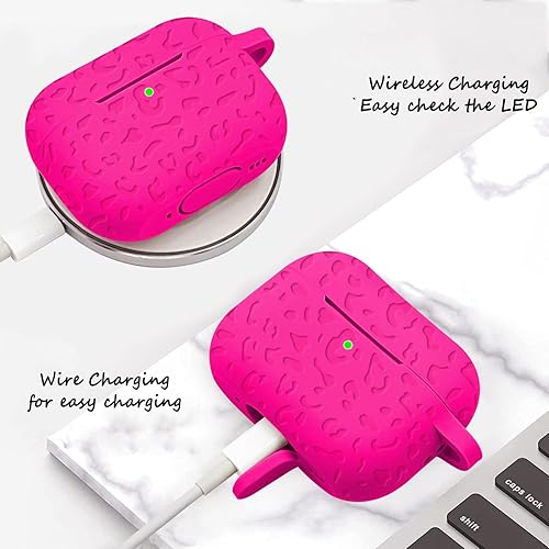 Case Compatible with AirPods Pro 3 Generation 2025 Cover with Keychain, Wonjury Engraved Leopard Skin Soft Cover for AirPods Pro 3 Case Full Protection,Front LED Visible, Black(Engraved Leopard/Hot Pink,for AirPods 4th (2024))