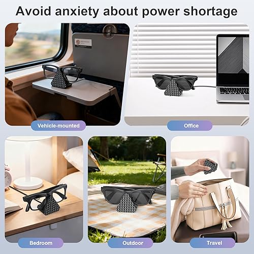 Compact and Portable Design: Measuring just 46x35x35mm (1.81x1.38x1.38 inches), its small size saves space. Its palm-sized form factor fits perfectly on your desk (taking up minimal space) and travels effortlessly in your backpack or handbag. Additionally, the USB port offers versatile charging options—power your smart glasses via computer, laptop, power bank, or car charger—providing convenient backup charging solutions for home, office, or on-the-go use
