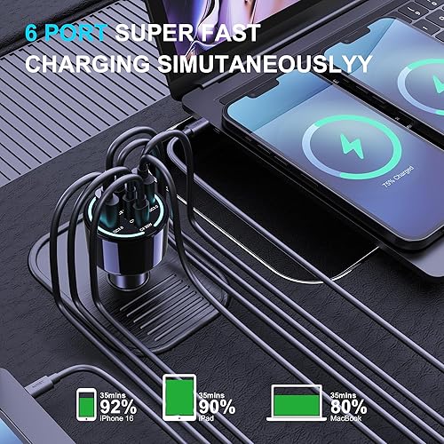 Super Fast 140W PD3.1 Charging: Advanced PD3.1 technology delivers 140W ultra-rapid charging through USB-C2 port (0-80% in 30 mins for 16" MacBook Pro), 3X faster than old car chargers
