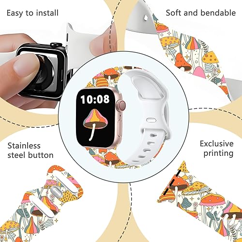 【Latest 10 Series Colorway, One Size】Our straps come in a variety of rich and pastel colors, including the latest 10 Series Official Colorway, Leopard Print, Butterfly Flower, Kitten, Shark, Independence Day Puppy, Vintage Flower, Strawberry, Mushroom, Peacock Feather, Bow, Ginkgo Biloba, Guitar Skull. Suitable for all women, women and men. Pairs perfectly with your outfit and can be easily changed to suit any occasion. 38 mm/40 mm/41 mm sizes fit 5.1"-7.1" (130mm-180mm) wrists;