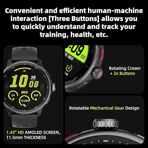 1.43" AMOLED Screen: The fitness tracker with 466×466 HD resolution and 850-nit peak brightness deliver sharp, colorful visuals even under direct sunlight. Customizable always-on display ensures access to time and fitness stats without lifting your wrist. 50Hz+ touch sampling rate ensures fluid swiping and tapping for seamless navigation. Interactive and Engaging Rotating Crown 2x Buttons meet your operational needs. You can also use your photos as the background of your watch in "Fitbeing".